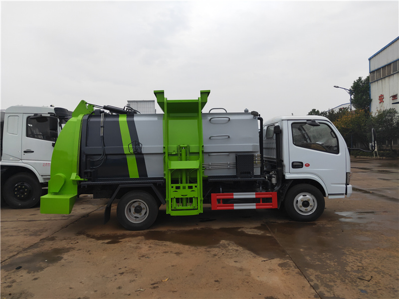 方罐式餐廚垃圾車:弧形廂體,箱體內(nèi)可實(shí)現(xiàn)固液分離,推鏟卸料,后蓋液壓開啟/鎖緊(帶耐磨橡膠密封條密封-后門關(guān)閉后滴水不漏),后門液壓鎖緊防誤操作功能,掛桶式提升機(jī),可配合120升、240升標(biāo)準(zhǔn)垃圾桶使用,清洗裝置(帶水箱、液壓馬達(dá)帶動(dòng)高壓泵)。