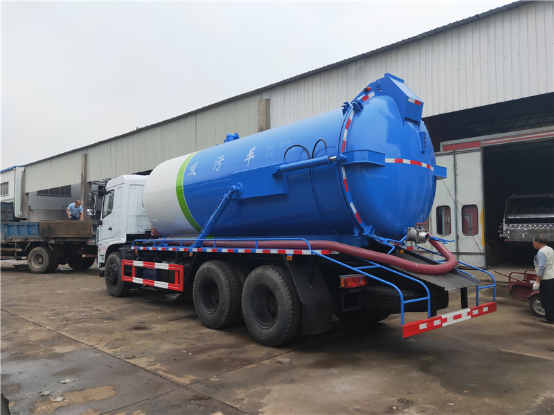 罐式吸污車,罐體液壓油缸舉升卸料,后蓋液壓油缸開啟鎖緊耐腐蝕密封條密封(保證了車輛的密封性運輸中滴水不漏)。罐內污物可通過液壓打開后蓋舉升罐體直接傾倒,吸污車可自吸自排,工作速度快,容量大,運輸方便,具有真空度高真空泵吸力大,吸程遠等優(yōu)點,特別適合用于含水污泥、化糞池-下水道內的淤積物的抽吸、裝運和排卸,尤其可 吸下水道泥漿、淤泥、石子、磚塊等較大物體 。(比吸糞車的吸力更大)、噸位大、效率高、用途更廣泛的特點。